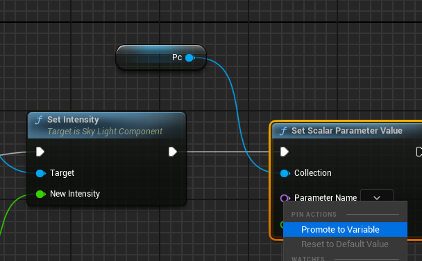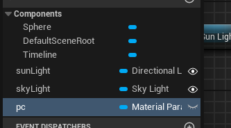 타임라인에서 끌어다 연결해주고 PC파라미터를 변경해서 PC파라미터를 사용하는 머터리어의 값을 동시에 변경시킨다.