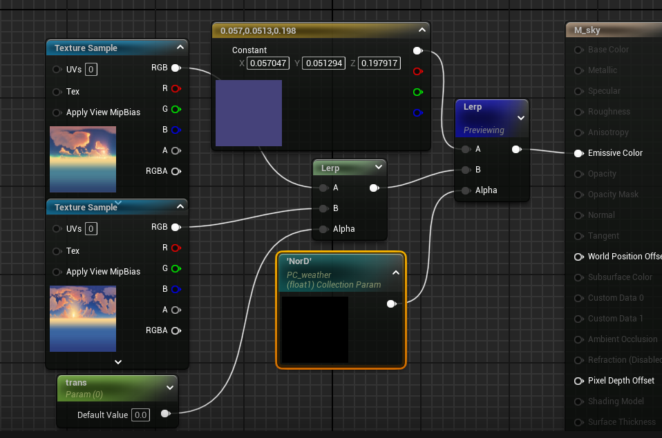 M_Sky에도 Collect Parameter를 추가해서 밤에는 어둡게 해주자.