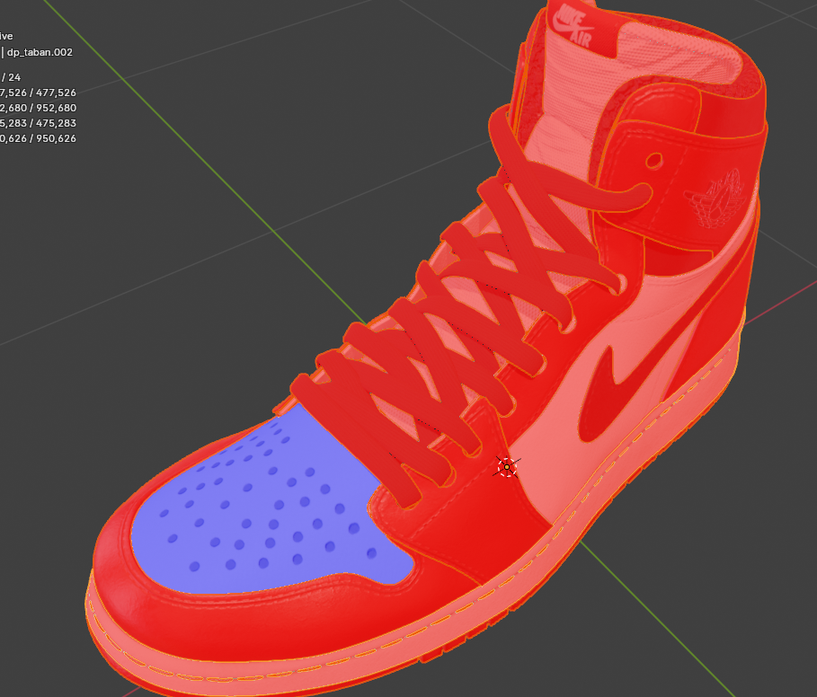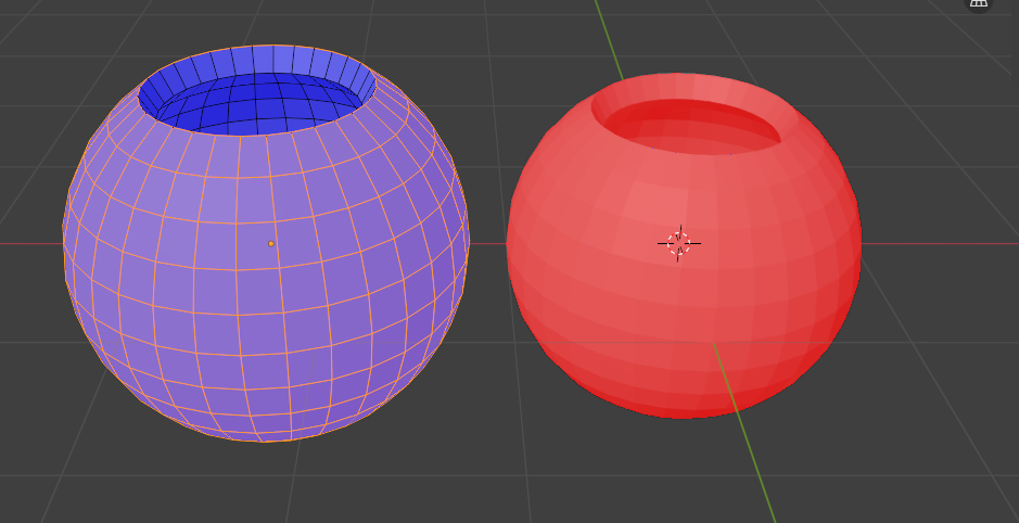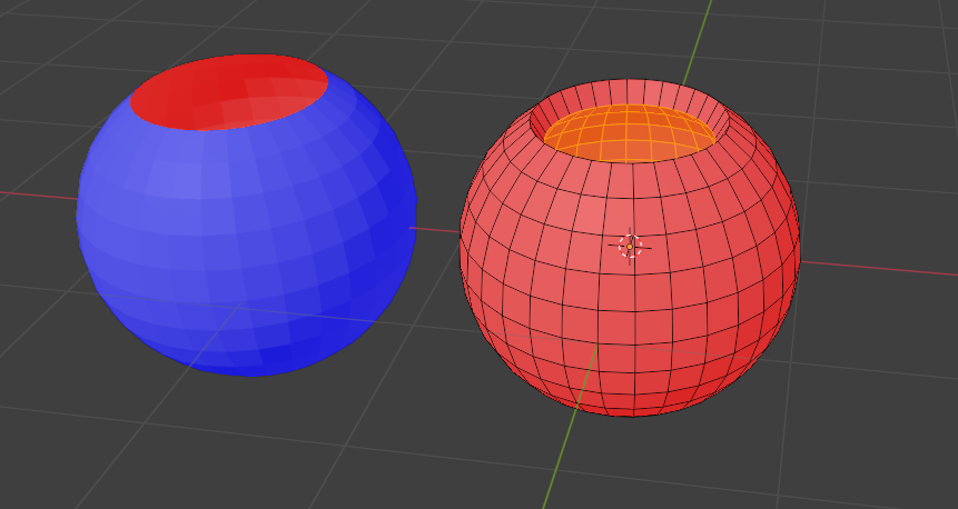 면을 만들었을때 면이 뒤집히면 면이 빨간색이 된다.