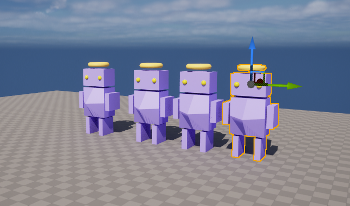 언리얼에서 리임포트 하면 복제된 로봇들이 한꺼번에 바뀐다.