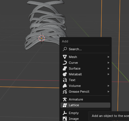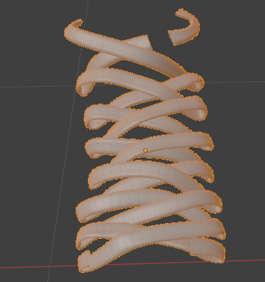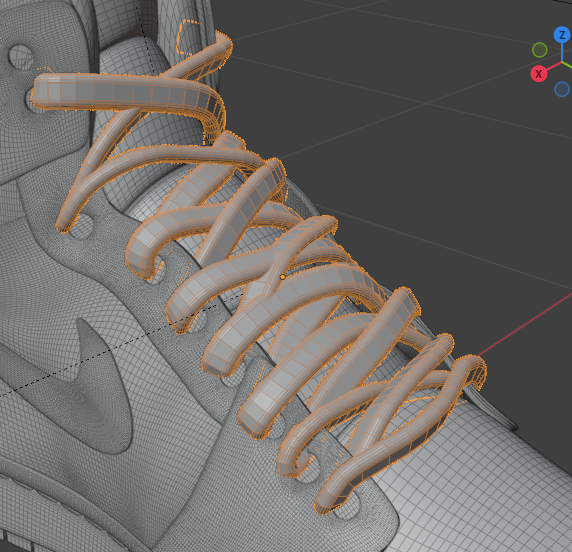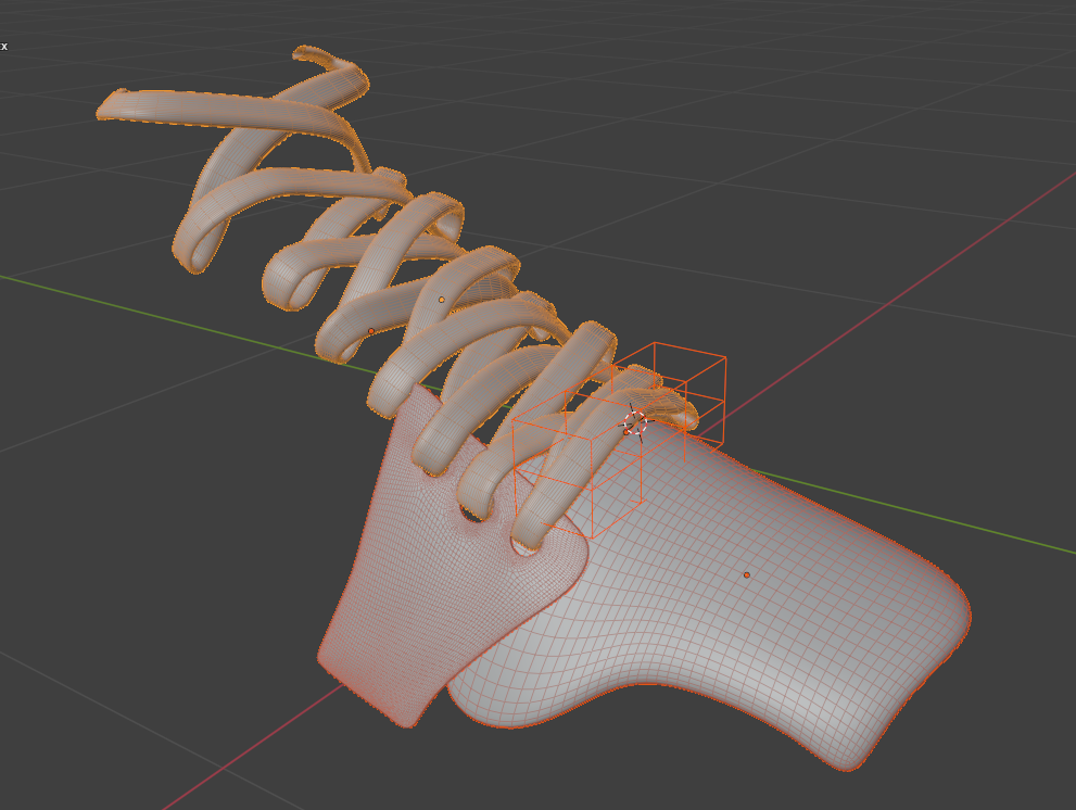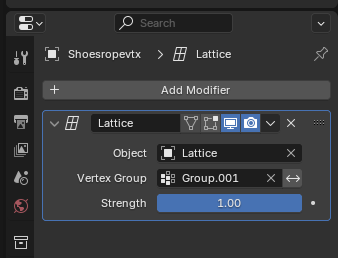 신발끈에 라티스 모디파이어를 적용하고 아까만든 라티스및 버티스 그룹을 지정해서 라티스 범위를 줄여준다.