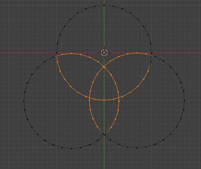 Circle을 추가하고 에디트 모드에서 복사하세 원점을 중심으로 3개를 배치하자