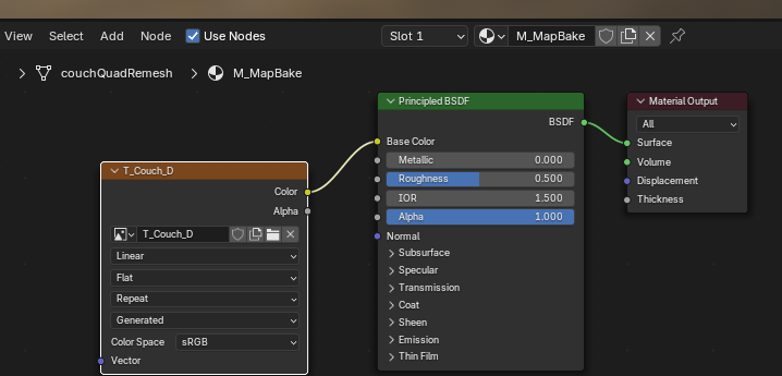 맵베이킹을 하기위해서는 오리지날 UVMAP과텍스쳐가 있어야한다. 지웠다면. 원래 카우치 FBX를 불러오자.