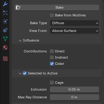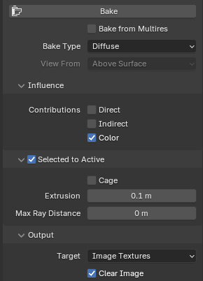 베이크에서 Bake로 이동하고 Duffuse, Color Active