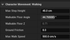 캐릭터의 속도는 Character Movement컴포넌트의 Max Walk Speed등을 조정하면 된다.