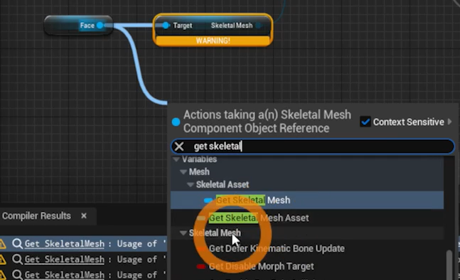 Face를 댕겨서 Get SkeletalMesh Asset을 연결해준다.