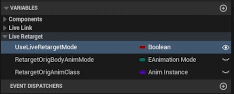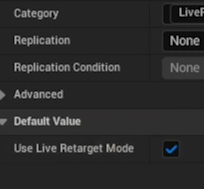 왼쪽패널아래쪽 LiveRetarget의 UseLiveRetargetMode를 선택하고 디테일에서 Use Live Retarget Mode를 선택해준다.
