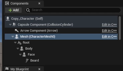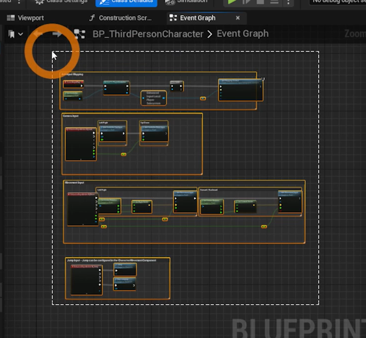 BP_ThirdPerson 블루프린트의 이벤트 그래프를 전부 복사해서 메타휴먼 블루프린트로 복사하고