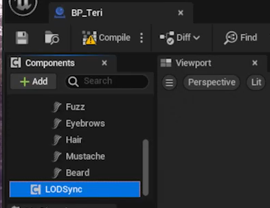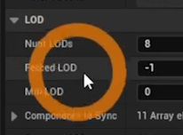 언리얼의 LOD때문에 멀리서 보면 머리카락이 안보이므로 BP를 열고 LOCSync컴포넌트를 클릭하고 LOD 세팅을 0으로 만 사용하게 만들어준다.