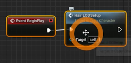 Event BeginPlay와 Hair LODSetup을 선택해서 연결해준다.