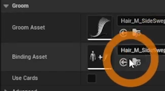 블루프린트 컴포넌트의 Body를 선택하고 디테일의 Groom의 Asset 그림을 클릭하면
