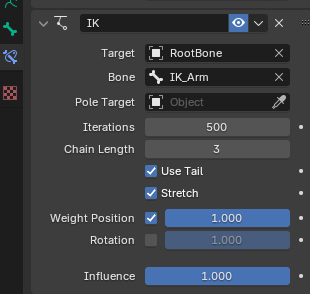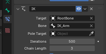 타겟에 아무튜어 Bone에 자신을 컨트롤할 IK뼈를 Bone에 Chain Length에 컨트롤할 개수를 넣어준다.