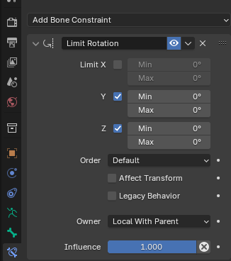 뼈마다 컨스트레인트를 걸어 움직임을 제한할수 있다.