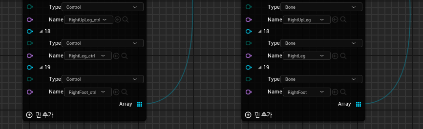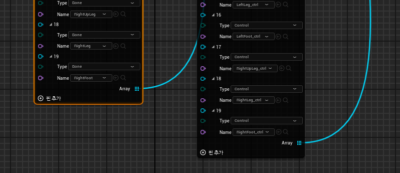 이번에는 아까 선택했던 뼈를 골라 어레이를 만든다 뼈가 앞에오게 한다.