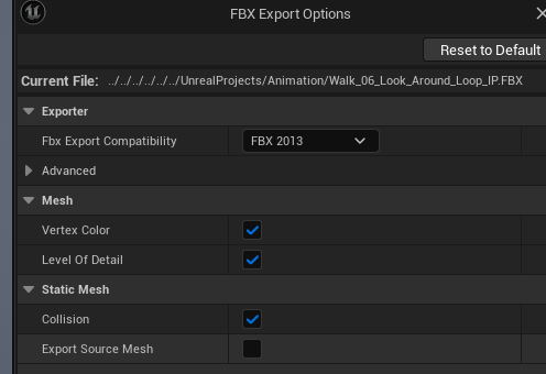 이름을 폴더에 저장하고 Export Source Mesh는 꺼준다.