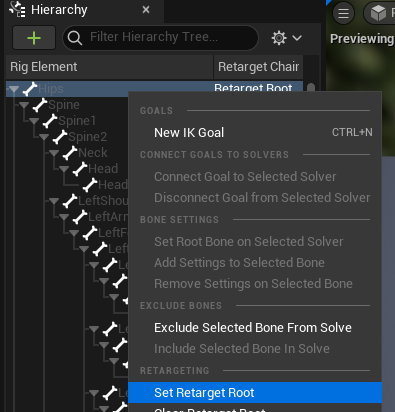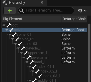 루트를 설정해야 하는데 믹사모의 경우 Hip을 Set Retarget Root로 설정한다. 언리얼 매니나 퀸의 경우 root 밑의 Pevis를 설정한다.