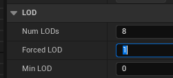 ForcedLOD가 -1인데 1로 변경하면 LOD가 1로 고정된다.