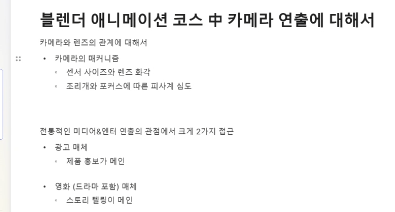 주로 대화씬에서는 인물에 포커스 하기 위해 피사체심도를 얕게 한다. 대화씬을 찍을때는 바라보는 쪽의 공간을 만드는 샷을 연출한다.