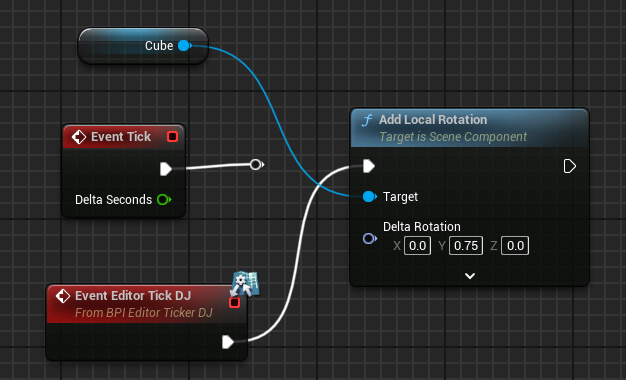 Editor Tick DJ를 더블클릭하면 Event Editor Tick DJ가 생성되고 Add Local Rotation를 연결해주면