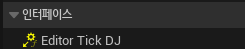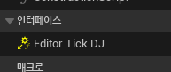 BPI를 만들기 위해 우클릭후 블루프린트 인터페이스를 선택하자. 이름을 BP_EditorTicker_DJ
