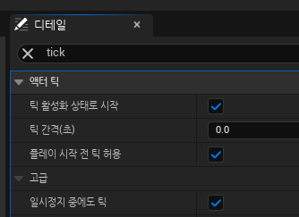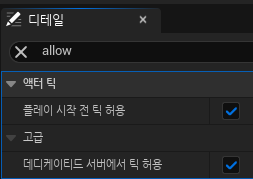 에디터 열고 틱허용 일시, 정지중애서도 틱허용 체크 에디터 전용액터여부 체크