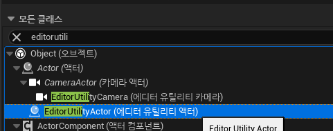 컨텐츠 우클릭후 Editor utiliy 만들자 이건 단순히 레벨상에서 셋타이머를 이용해 게임전 레벨상에서 틱을 만들어 게임전 애니메션을 구현하는게 목적이다. 시네마틱 용도인것 같다.