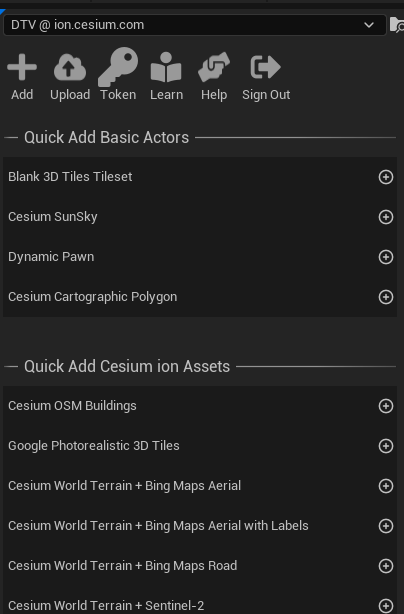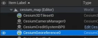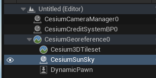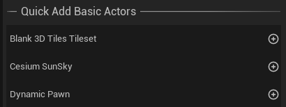Cesium SumSky, Dynamic Pawn, Blank 3D Tile Tileset순으로 +를 눌러준다.