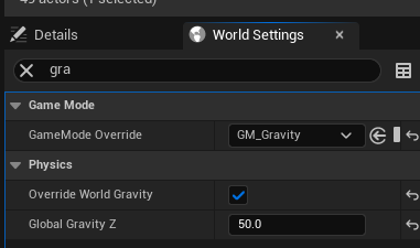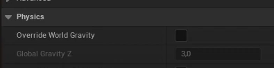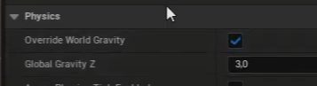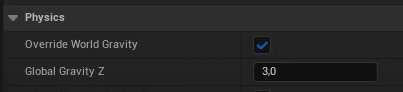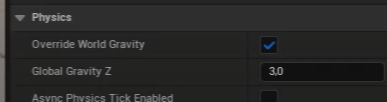 WorldSettings의 Override WorldGravity를 켜고 값을 + 로 주면 피직스의 영향을 받는 메시들은 떠 오르기 시작한다.