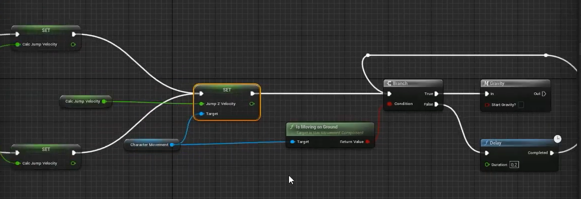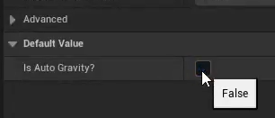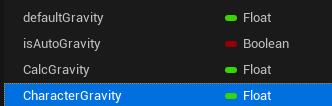 공중에 뜬 캐릭터를 자동랜딩 하게 하려면 IsAutoGravity가 True이고 그때는 CharacterGravity(0.15)를 CalcGravity에 설정하고 아닐때는 DefaultGravity(0)을 설정한후 다시 MovementComponent의 GravityScale에 설정해서 안떨어지게 한다.