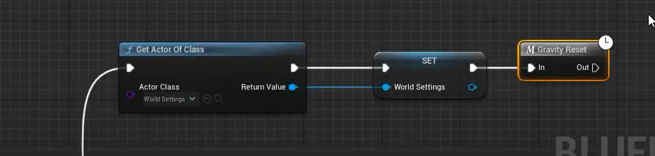 BP_ThirdPersonCharacter의 EventBeginPlay에 WorldSeting을 저장하고 Gravity를 연결한다. GravityScale을 처리한다.
