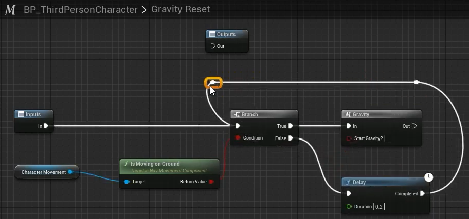 1을 누르고 Gravity매크로를 실행시켜 GravityScale을 변화시켜 랜딩시킨후 GravityReset에서 랜딩시 StartGravity를 리셋시켜준다.