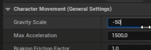 BP_ThirdPersonCharacter의 Movement Component의 GravityScale을 0으로 하자.