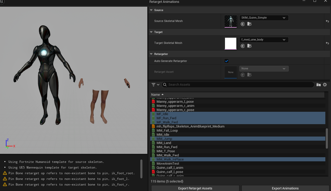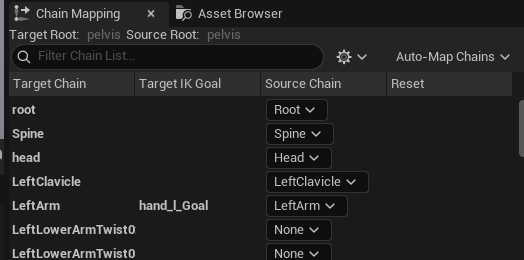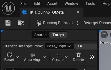 메타휴먼의 경우 체형에 따라 다르다 해당 파일을 고르자. 위에서 만든 IK리타게터를 사용하려면 리타겟터의 Auto를 끄고 지정하면 된다. 5.5에서는 Auto기능이 있어 리타게터를 안만들어도 되는듯 하다.