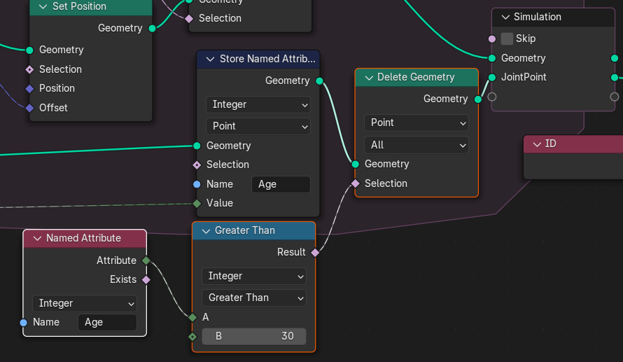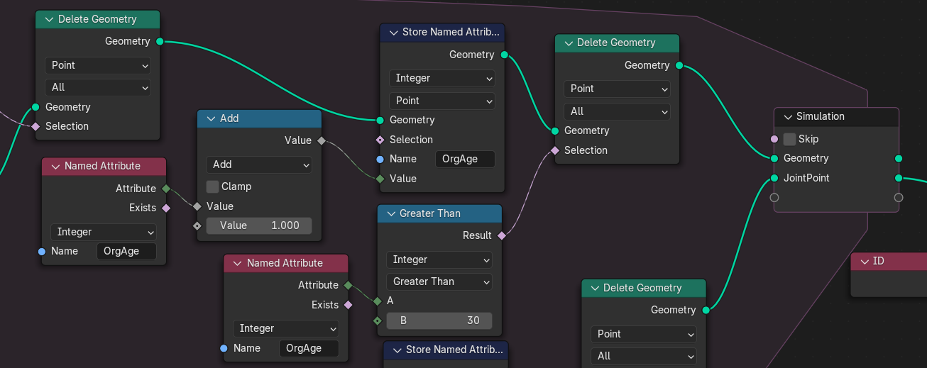 Simulation JointPoint사이에 Age라는 Attribute를 만들고 1씩 증가하게 해주고