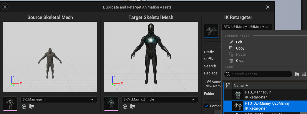 RTG_UE4Manny_UE5를 선택하고