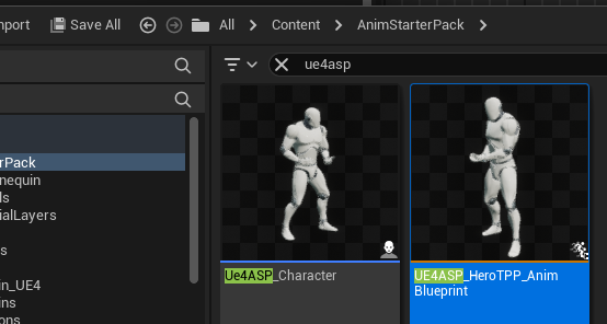 애니메이션팩의 ABP는 UE4ASP_HeroTPP_AnimBlueprint이다 이걸 우클릭후 히타게팅해주자