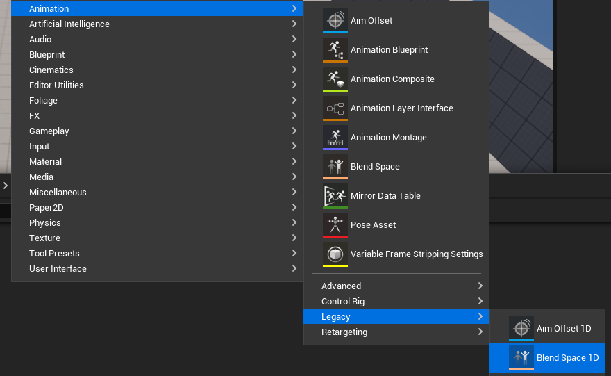 강좌에서는 Locomotion과 Crouch폴더를 만들어 애니메이션을 분류했는데 난 그냥하겠다. BlendSpace1D를 만들고