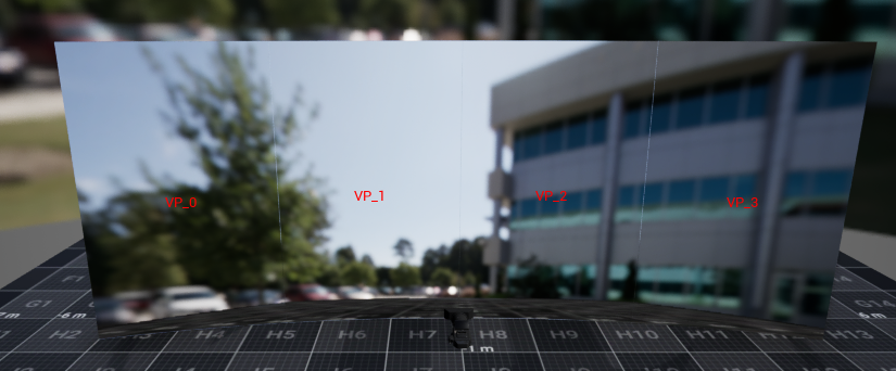 그런데 커브드 스크린에 캡쳐된 화면은 DefaultViewPoint로 고정되어 있는데 가운데 보면 작은 화면이 있다. 이건 씨네카메라의 화각에 의해 결정된다. 실제 씨네카메라의 위치나 화각을 만져보면 바뀐다.