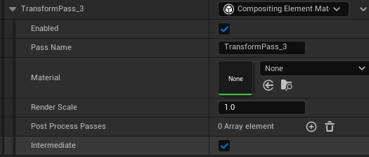 TransformPass_0에 입력한 Material의 Param2D의 이름이 아래 InputElemets에 노출되고 이게 컴포저 이름과 일치해야한다.