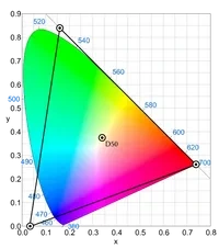 CIE 색 영역 좌표: xR 0.515 yR 0.241 zR -0.001 xG 0.292 yG 0.692 zG 0.042 xB 0.157 yB 0.067 zB 0.784
