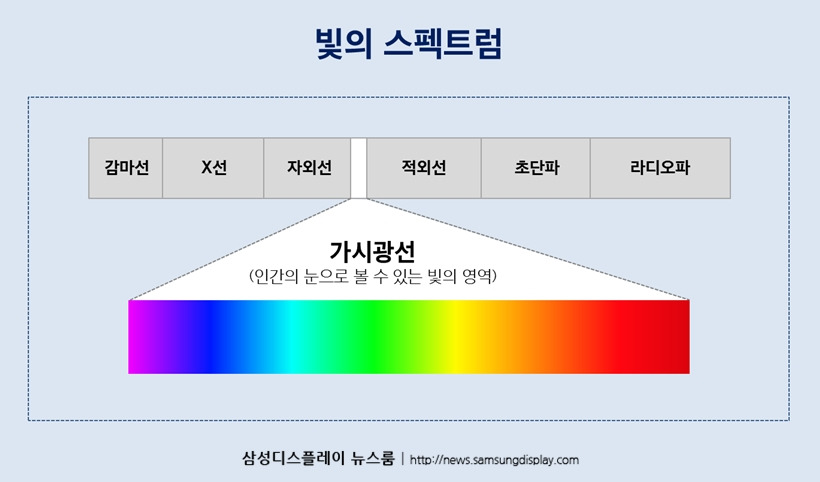 디스플레이는 우리의 눈에 시각적 정보를 전달해 주는 매개체입니다. 그렇기 때문에 디스플레이는 특정한 모양과 색의 구성을 통해 문자 또는 그림, 영상의 형태로 정보를 전달해 줍니다. 디스플레이에서 시각적 정보를 전달해주는 이같은 방법은 바로 빛을 이용한 것으로 오늘은 빛과 그 빛을 이용한 색에 대해서 알아보는 시간을 갖겠습니다.