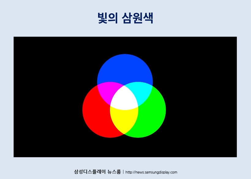 디스플레이는 바로 가시광선 영역의 빛을 이용해 색을 표현합니다. 그렇다면 수십만가지의 색을 디스플레이는 어떻게 표현할 수 있을까요? 비밀은 바로 빛의 삼원색에 있습니다.