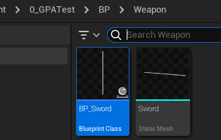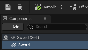 Actor로 BP_Sword만들고 메시를 루트밑에 넣어준다.