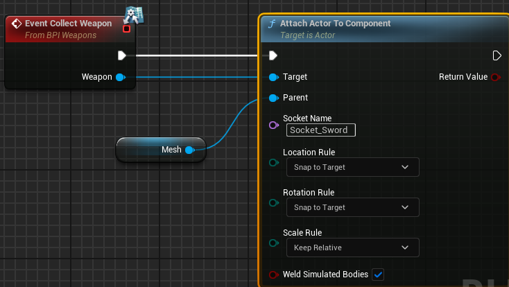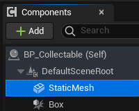 BP_Sword의 메시를 카피해서 BP_Collectable DefaultRoot밑에 Paste해주자, skeleton의 경우 이름채로 카피된다.