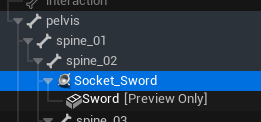 매니에 Spine02밑에 소켓을 만들고 프리뷰로 방금만든 Sword를 지정하고