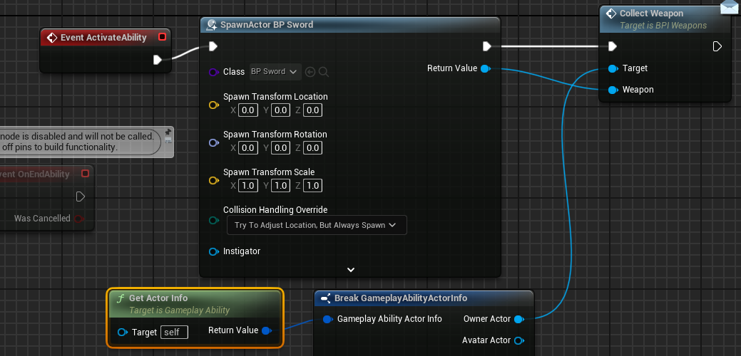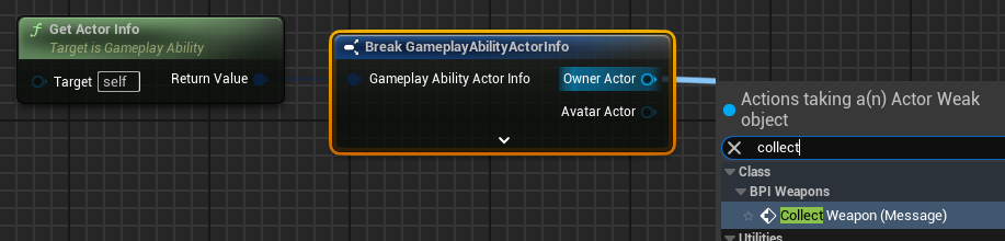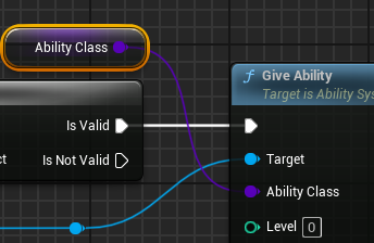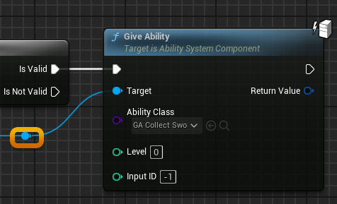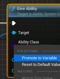 GiveAbility를 추가하고 AbilityClass에 GA_CollectWeapon을 지정하고 변수로 승격