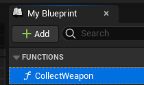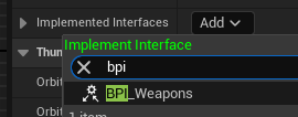 BP_ThirdPerson으로 ClassSettings를 선택 오른쪽 Interface에서 BPI등록하고 왼쪽 컴포넌트아래 CollectWepon더블클릭