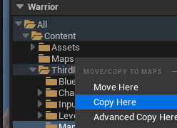 Maps라는 폴더를 만들고 ThirdPerson폴더의 맵을 복사해 보자. 이름을 FeatureDevMap으로바꿔주자