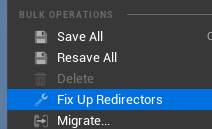 LevelPrototyping폴더는 옮겨지지 않은것 같지만 폴더만 남은것이다. 이럴때는 SaveAll을 해준후 Content폴더를 우클릭후 Fix Up Redirectors를 선택하고