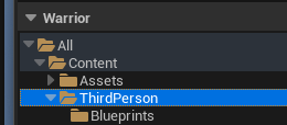 컨텐츠브라우저의 +를 눌러 Add Feature > ThirdPerson을 블루프린트만 가져오자.